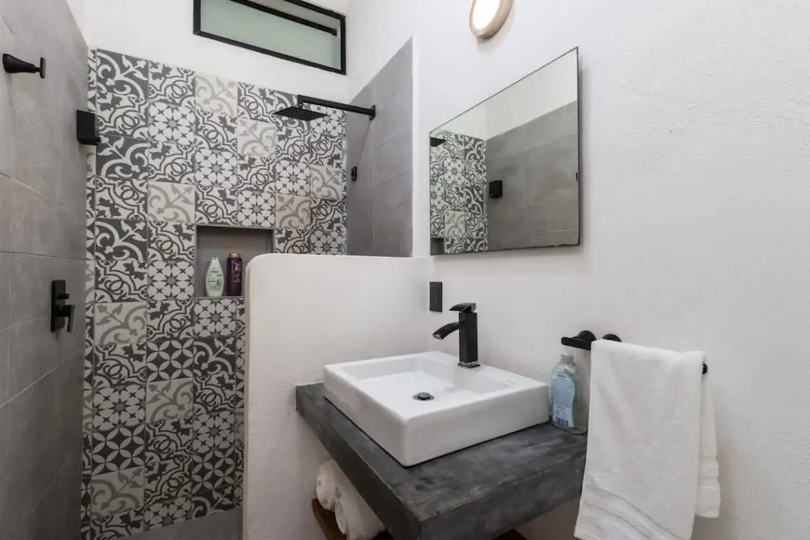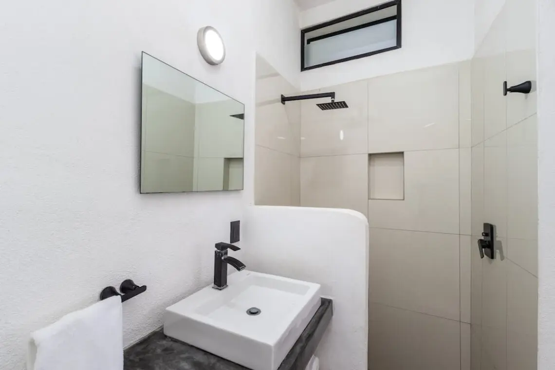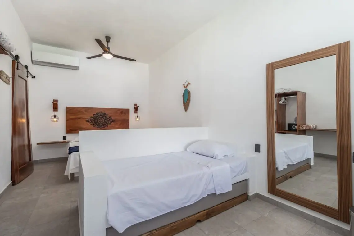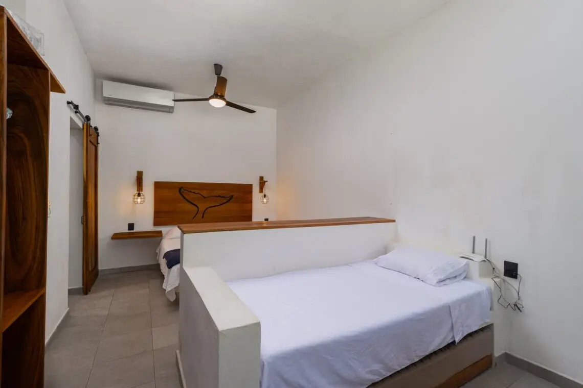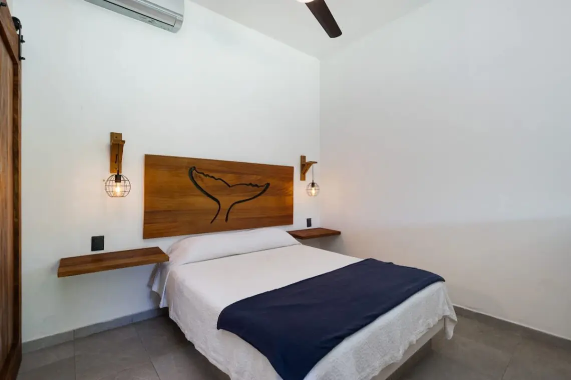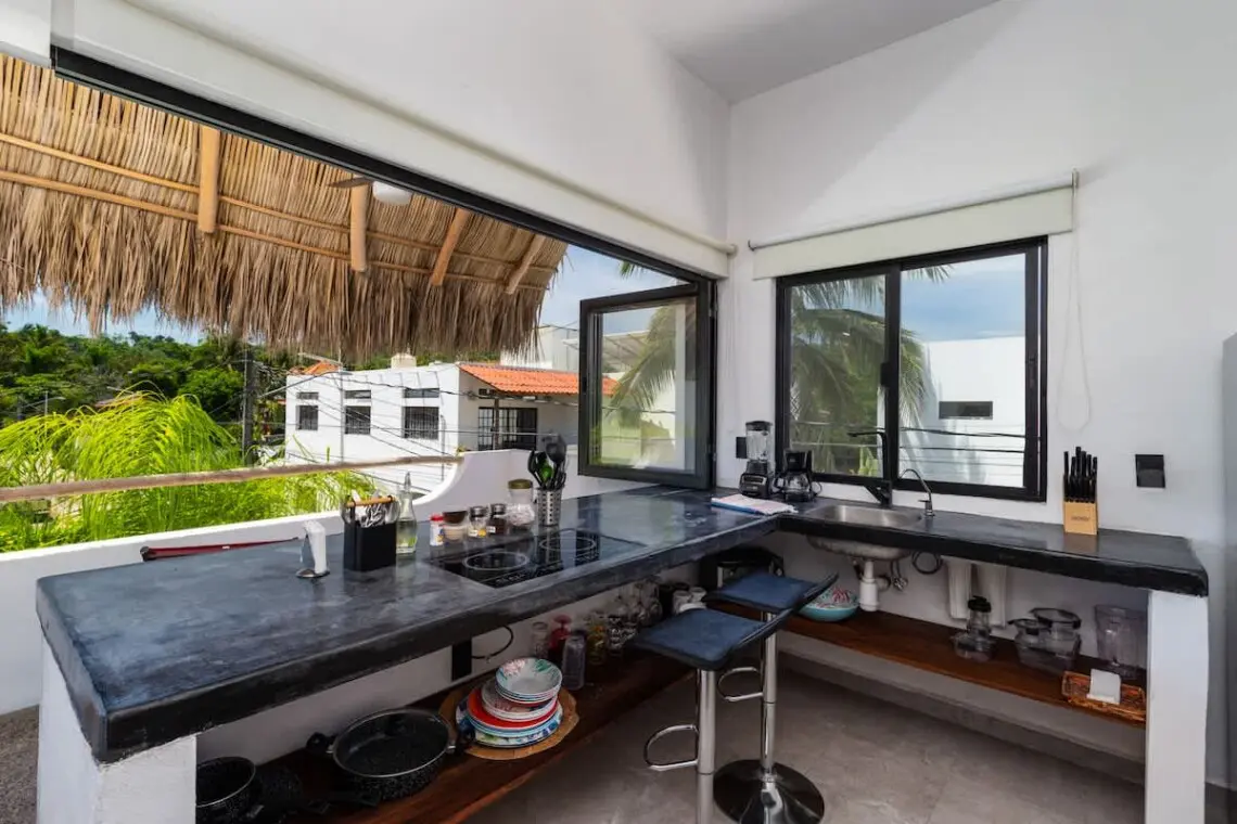 Downstairs, relax on the shaded terrace with outdoor furniture; upstairs, enjoy the balcony perfect for morning coffee or evening sunsets. The property offers peaceful seclusion just a short walk from San Pancho’s vibrant town center and beach.