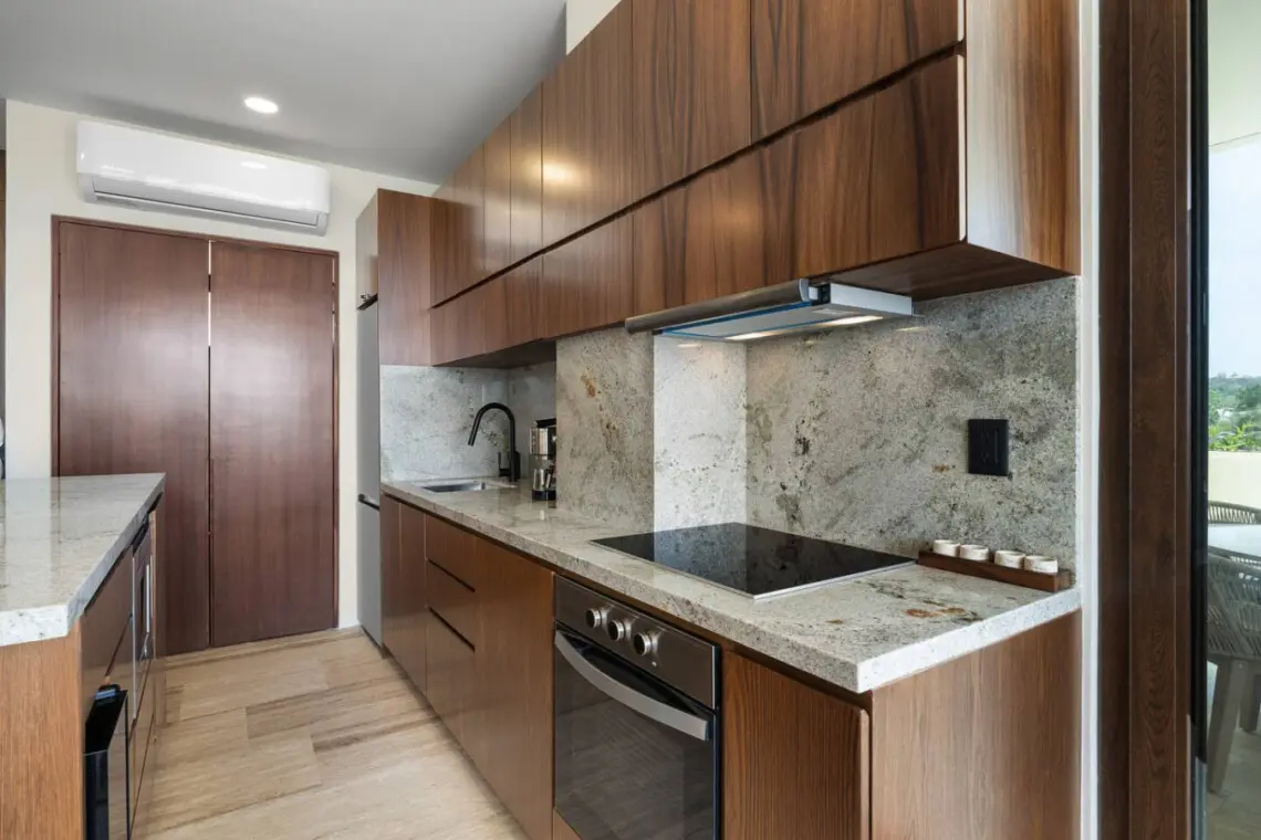 This brand-new designer-decorated 2-bedroom, 2-bathroom residence sits high above town, offering unobstructed views of the ocean, jungle, and surf. The open-air living room features floor-to-ceiling sliding glass doors, seamlessly blending indoor comfort with the tropical surroundings. The fully stocked kitchen includes a high-end espresso machine, wine fridge, chef-worthy cookware, and even the option to bring in a private chef for unforgettable dinners al fresco.