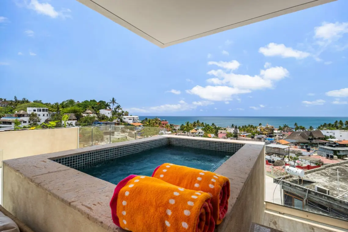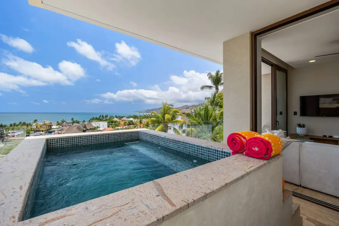 Sip your morning espresso as you watch whales breach from your panoramic corner balcony. Start your day with yoga on your private terrace using the provided mats, or stretch out in the rooftop hammock lounge as the breeze rolls in from the ocean. Spend your afternoons strolling Sayulita’s vibrant cobblestone streets—lined with taco stands, boutique markets, and candlelit cafes—then return to your heated plunge pool to enjoy a golden-hour cocktail as the sun melts into the Pacific. Whether you’re whale-watching, soaking up rooftop views, or dancing with all the joy this place creates, this is luxury living infused with authentic Mexican charm.