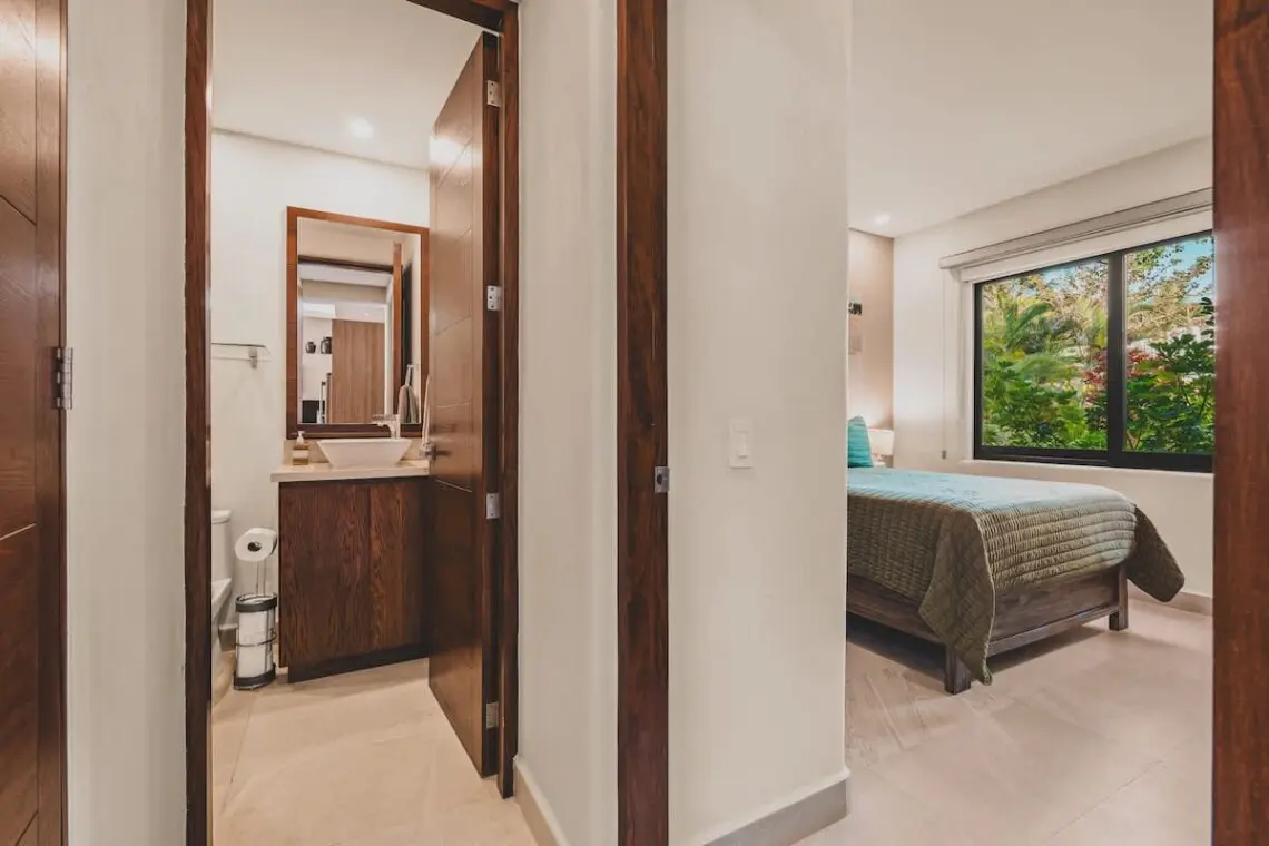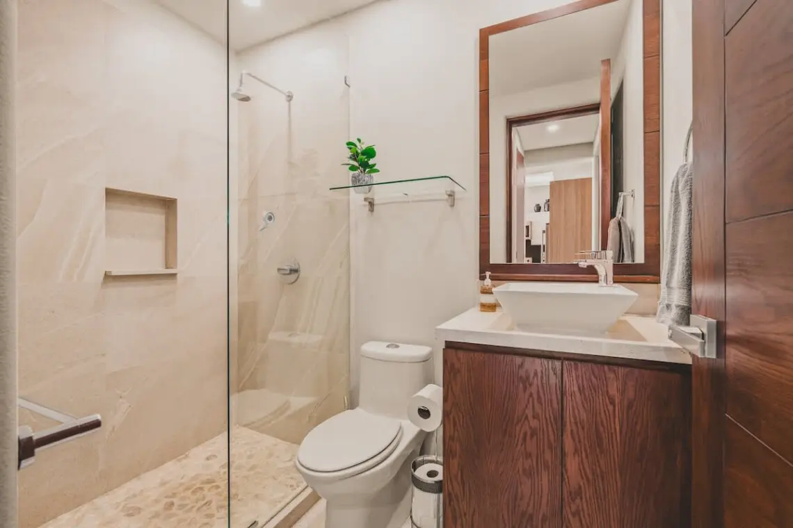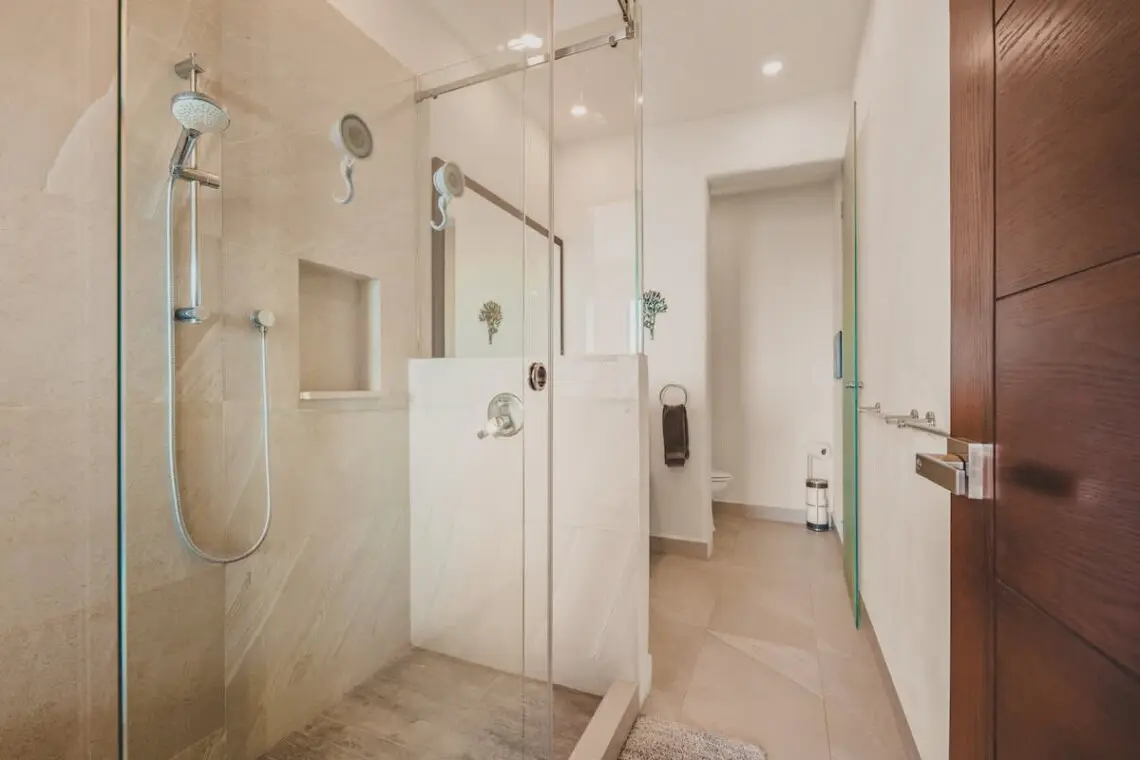 A second bathroom mirrors the luxury of the first, with a spacious walk-in shower and elegant vanity.