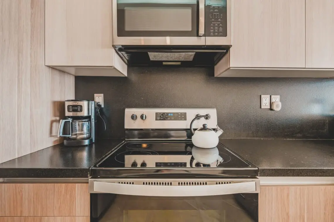 It’s stocked with all the necessary utensils, pots, pans, and accessories for both elaborate home-cooked meals and quick snacks.