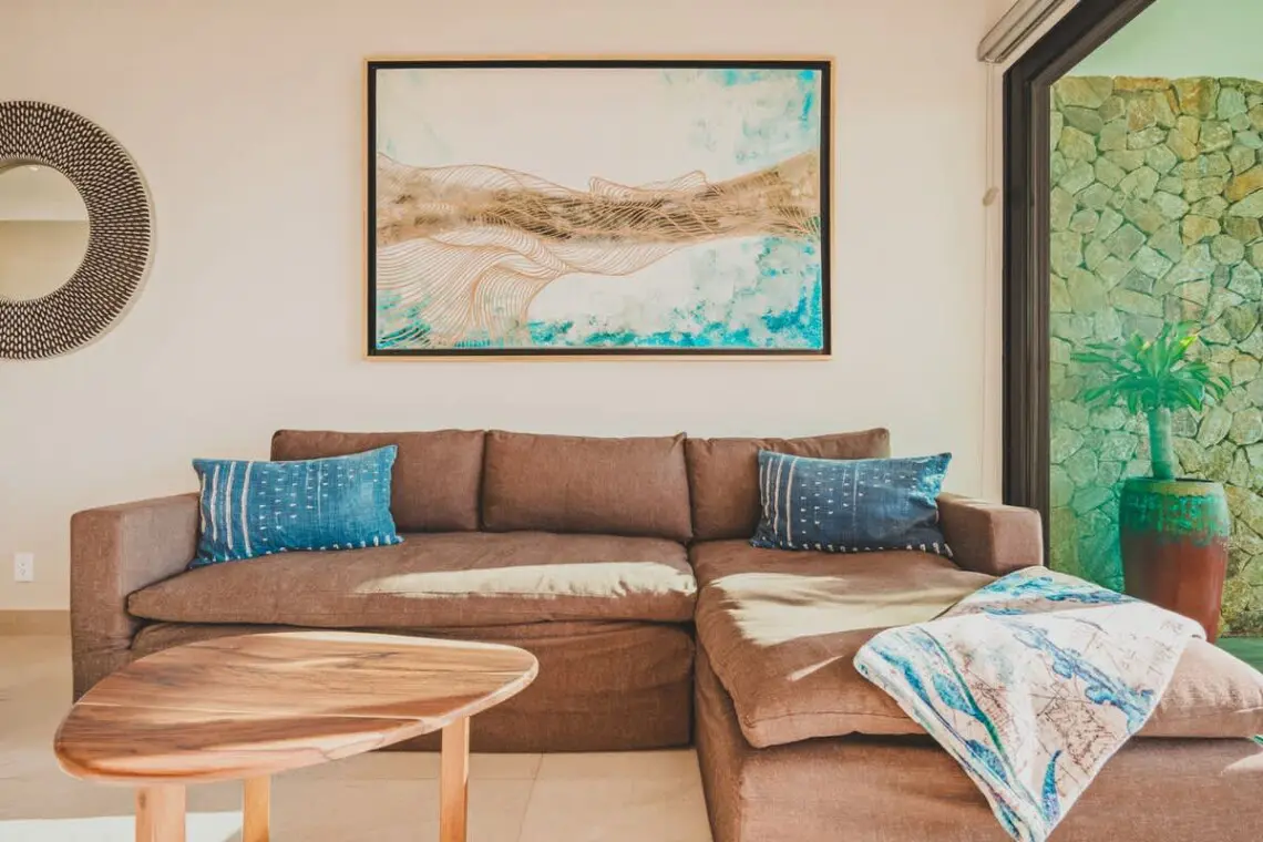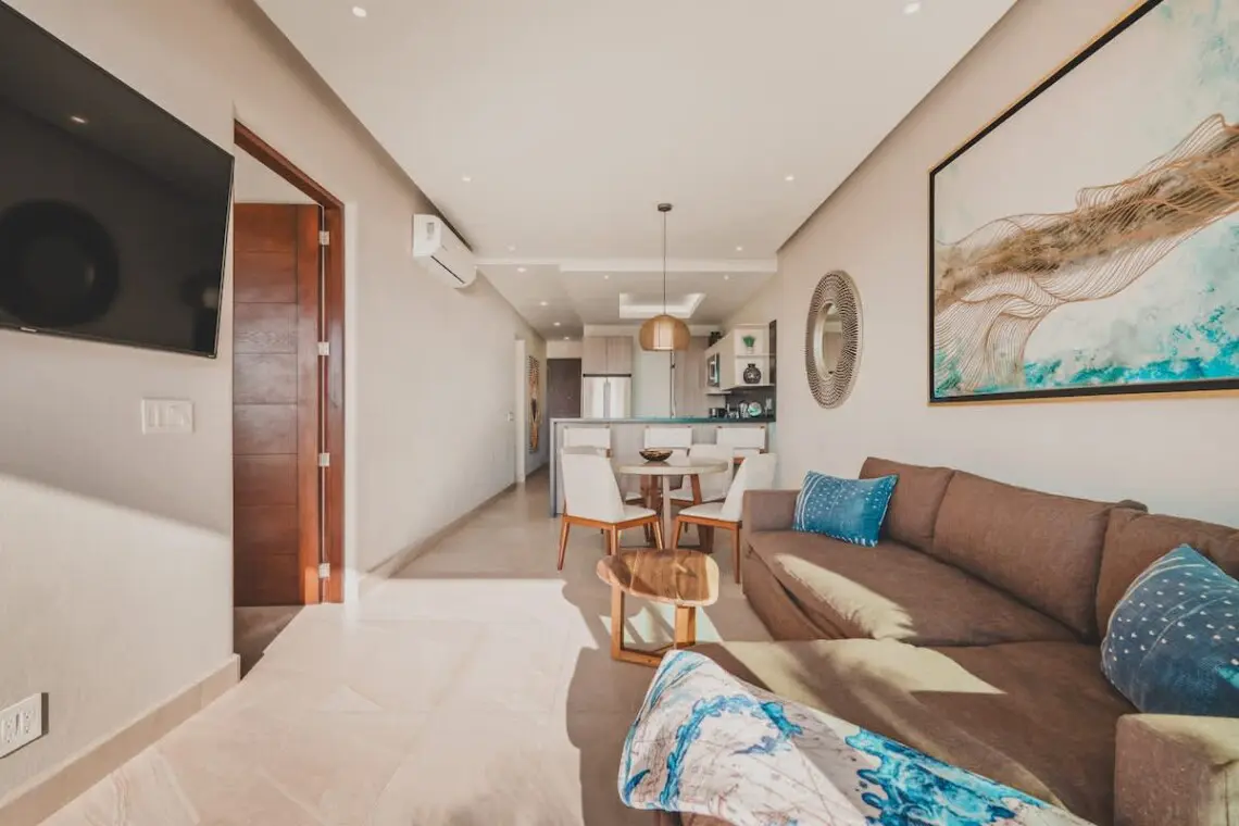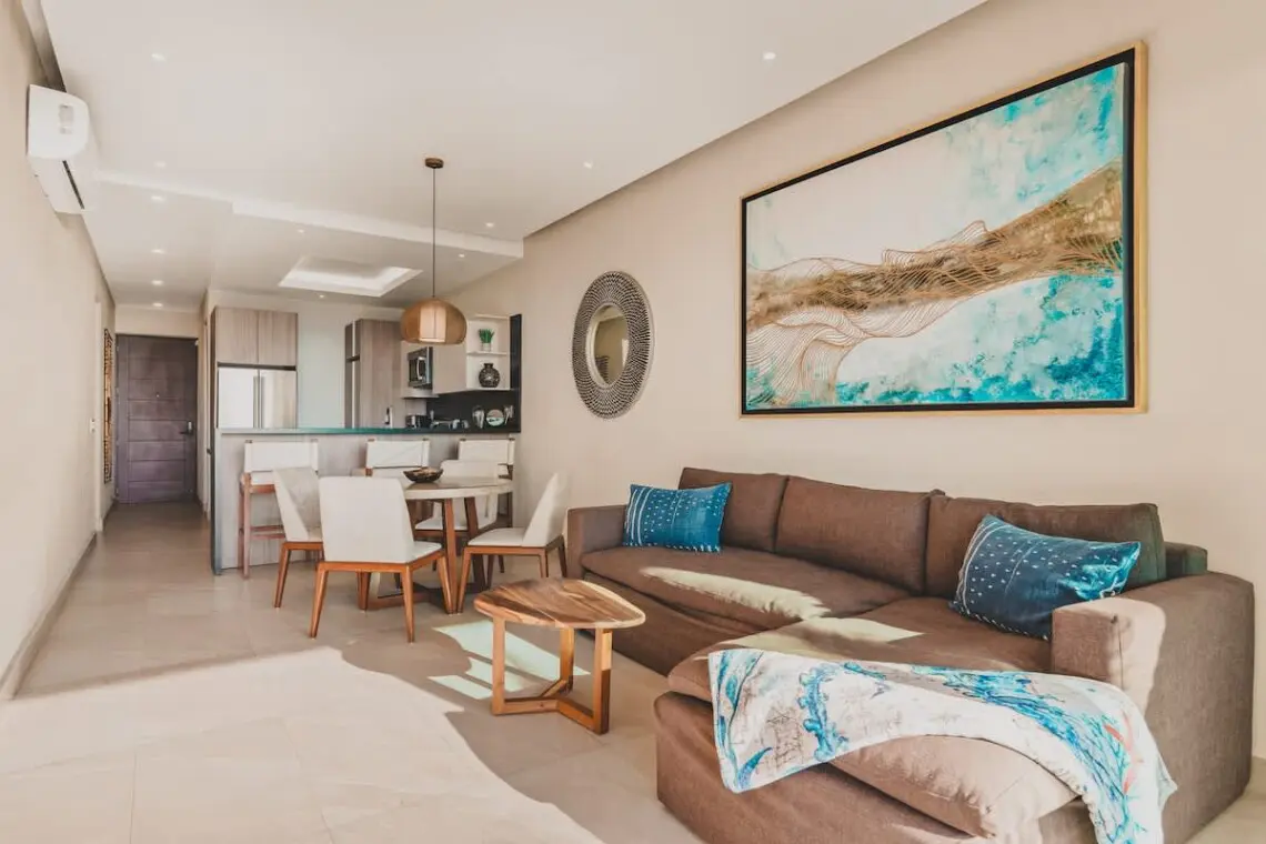 The heart of Casa de Luz is its open main living area, where the boundaries between the kitchen, dining space, and living room blur, creating a seamless flow that encourages togetherness.