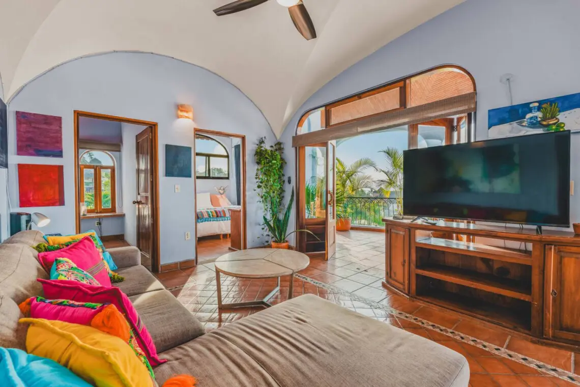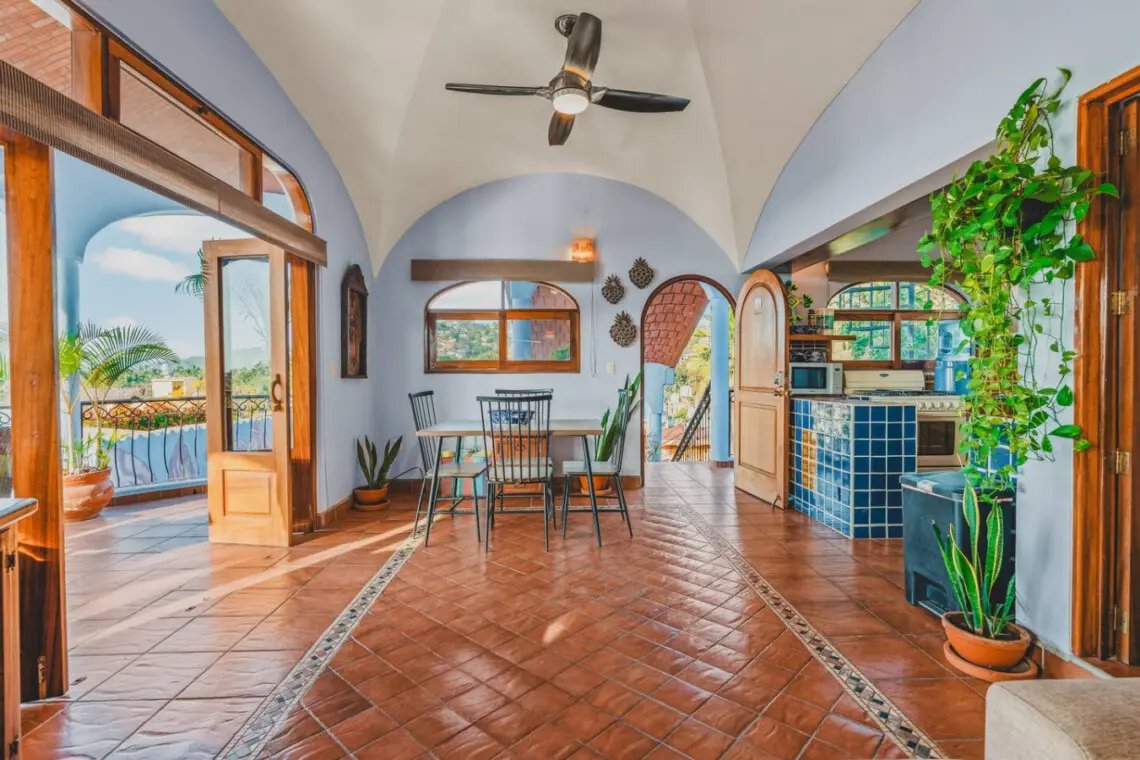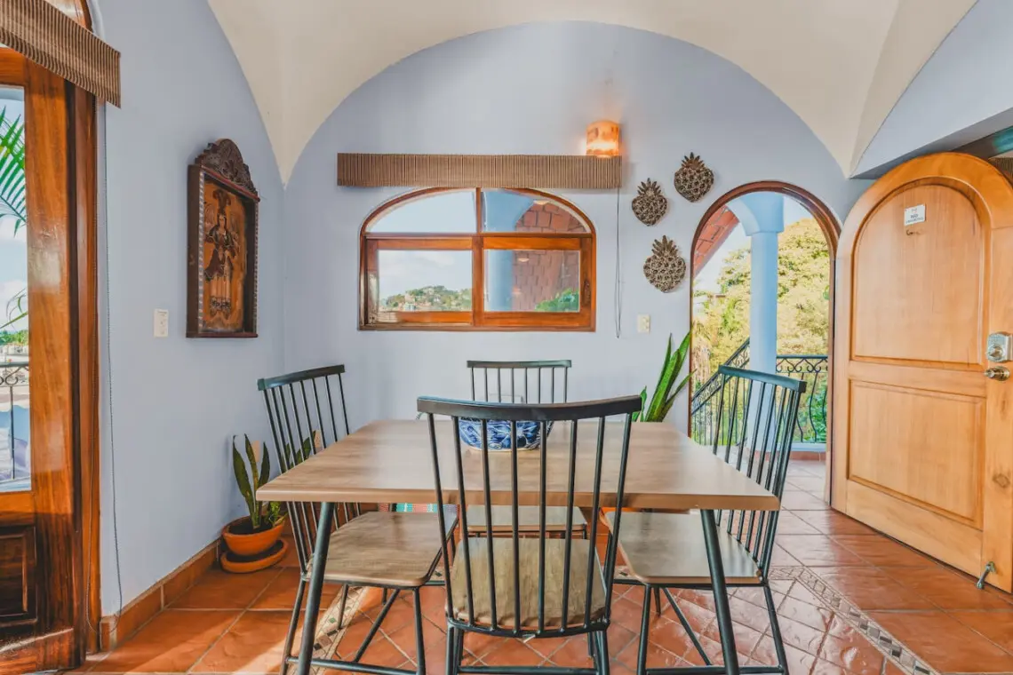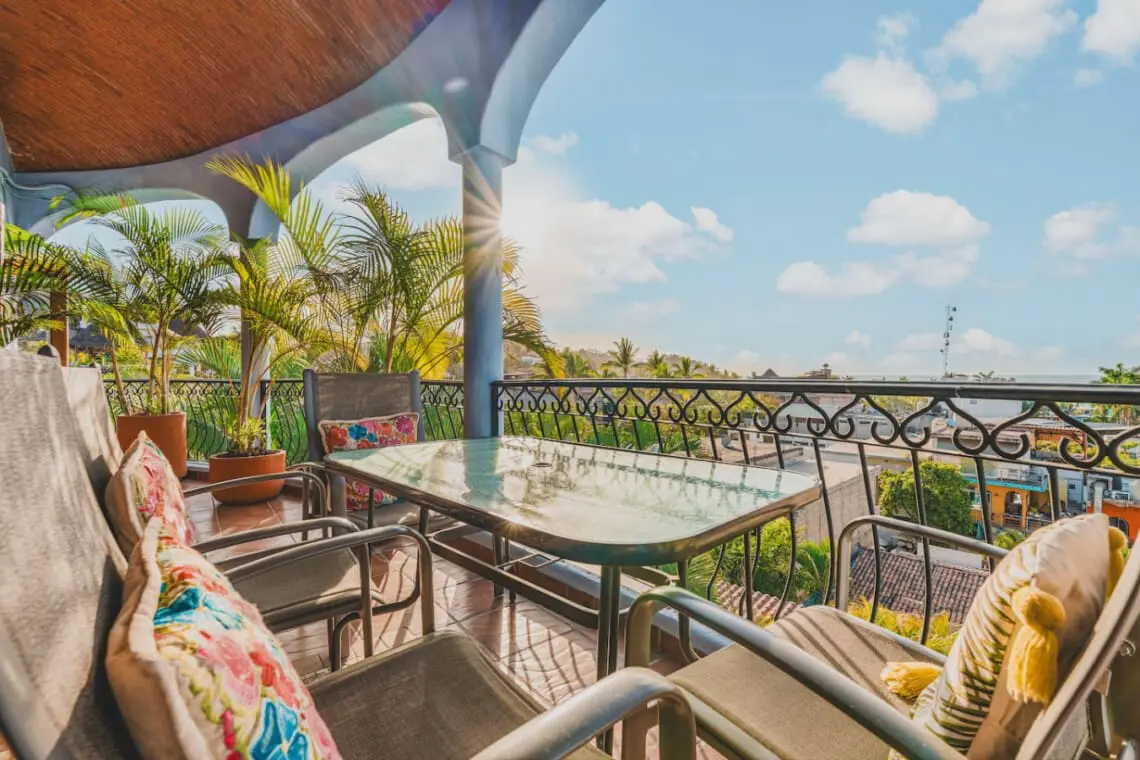 Casa Del Morro Top level suite, stunning terrace overlooking downtown Sayulita, the pool, and ocean. The suite has two bathrooms and two bedrooms; one king sized and one queen sized. A lovely kitchen is well equipped for all your cooking needs. Bonus, it has the highest speed internet available in Mexico.