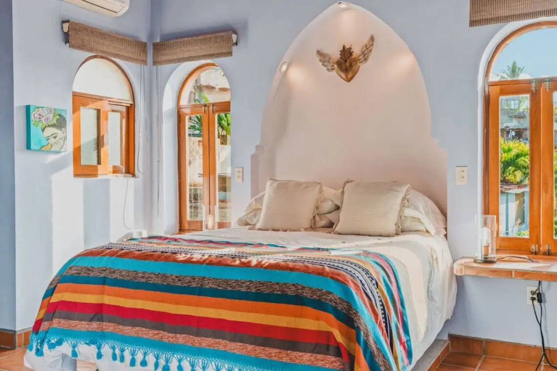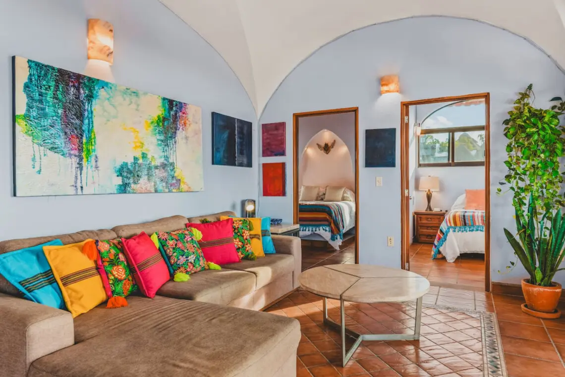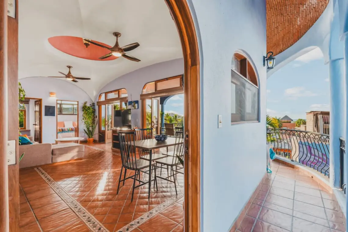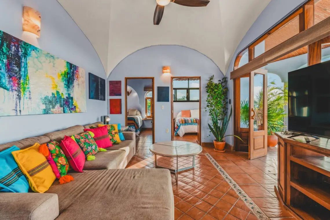 Casa Del Morro Top level suite, stunning terrace overlooking downtown Sayulita, the pool, and ocean. The suite has two bathrooms and two bedrooms; one king sized and one queen sized. A lovely kitchen is well equipped for all your cooking needs. Bonus, it has the highest speed internet available in Mexico.