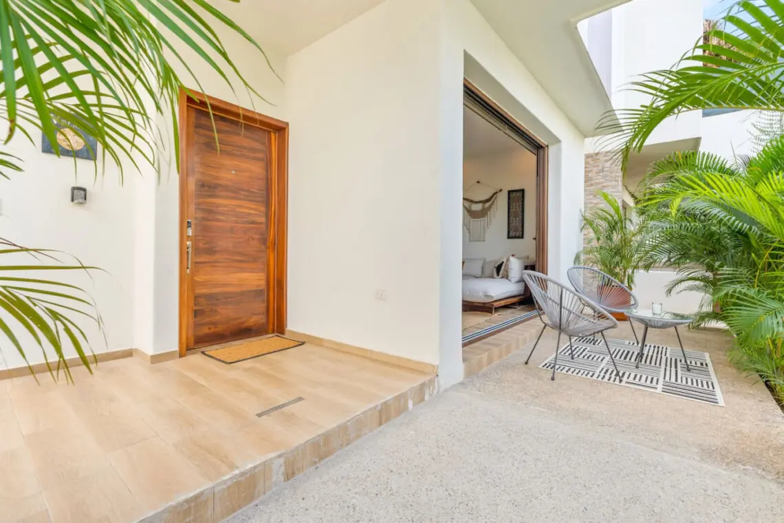 Welcome to your tranquil getaway in San Pancho. This stylish retreat is nestled in a private gated community with only six houses on the property, ensuring peace and privacy. Designed with a stunning fusion of modern Mexican and Southeast Asian influences, the brand-new build boasts clean finishes and thoughtful personal touches handpicked by the owners. Just a 10-minute walk or a quick 3-minute bike ride down San Pancho’s main street to get you to its pristine beach. You’ll enjoy easy access to boutique shops, restaurants, and vibrant local culture. Whether you prefer strolling through town, renting a golf cart, or biking to explore (2 complementary bikes provided), a car isn’t necessary here. It’s the perfect blend of relaxation and adventure.