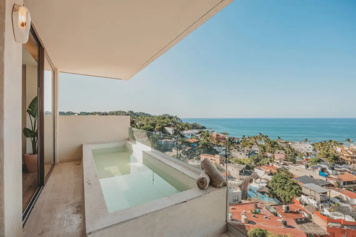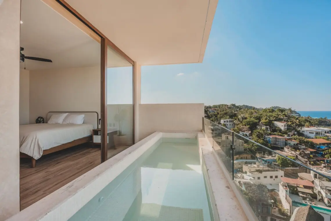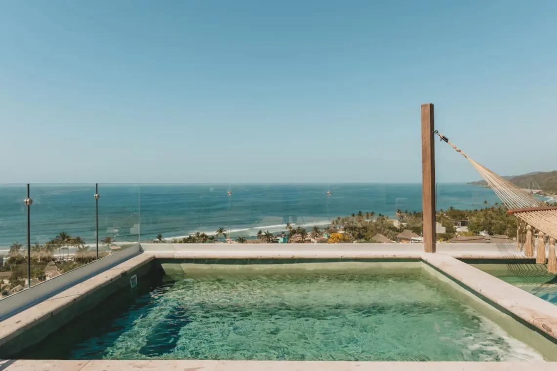 Spacious 3BR retreat in Sayulita’s Caivama luxury complex! Enjoy a rooftop infinity pool, hammock lounge, family pool, gym, yoga studio and on-site bar. Your 9th-floor escape offers ocean breezes, a private plunge pool, king + queen suites, fast WiFi, A/C, luxury linens, and views. Pet-friendly, elevator access, paid parking available. Walk to the beach, cafes, and boutiques—perfect for families, couples and groups.